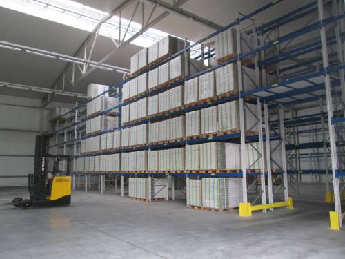 Magazyn posiada łączną powierzchnię 963 m2, wyposażony jest w posadzki bezpyłowe, posiada zabezpieczenie przeciwpożarowe.