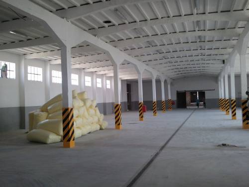 W magazynie wykonana jest nowa posadzka betonowa z powierzchnią zacieraną, nowe oświetlenie ze świetlówkami jarzeniowymi, instalacja elektryczna 230/400 V, instalacja hydrantowa przeciwpożarowa, instalacja wod-kan i alarmowa. Do pomieszczeń magazynowych prowadzą wrota magazynowe o wymiarach 3,30 x 4,50 m (przejezdne dla tirów) w ilości 5 sztuk, w tym 3 szt. segmentowe firmy HORMANN i 2 szt. tradycyjne; stalowe, rozwierne.