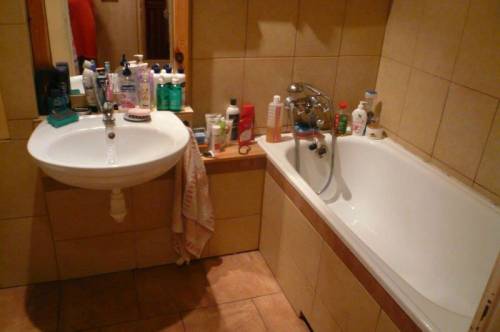 Łazienka z wc: ściany glazura, podłoga - terakota;wanna