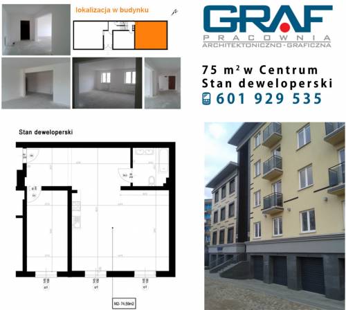 - przestronne mieszkanie 74,59 m2 ? możliwość dowolnej aranżacji przestrzeni, podziału na pokoje