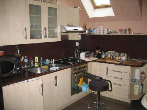 Lokal mieszkalny nasłoneczniony dzięki oknom poddaszowym. Oświetlenie mieszkania: halogeny na przedpokoju oraz przy meblach w kuchni, reszta żyrandole.