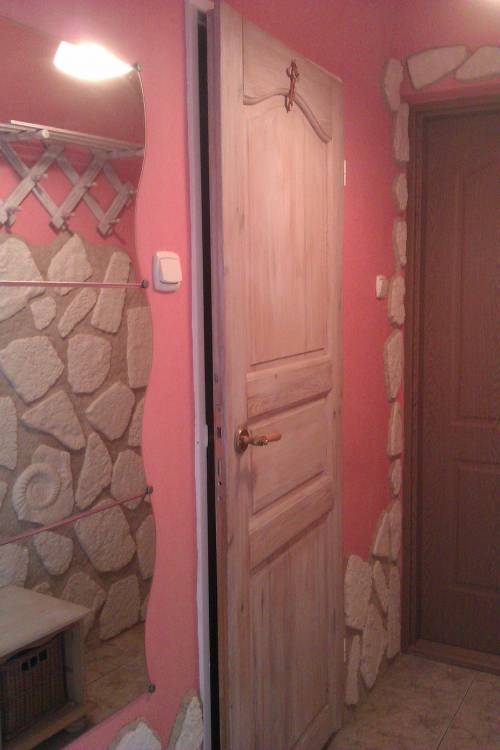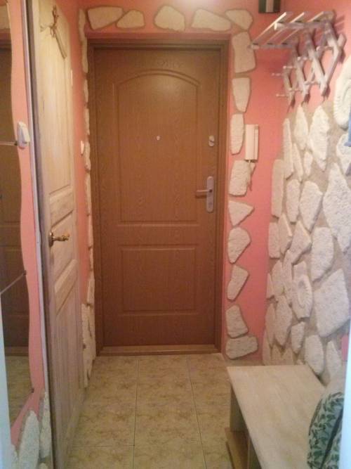 W przedpokoju znajduje się szafka na buty, garderoba, oświetlenie, lustro.