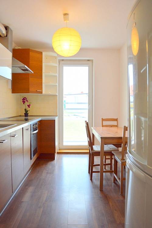 Składa się z obszernego salonu (28 m2), z którego wychodzimy na taras (62 m2), dwóch pokoi każdy po 10 m2, kuchni jasnej, z oknem, w pełni umeblowanej (9 m2), łazienki z wanną narożną (5 m2), przedpokoju (10 m2) i piwnicy (3 m2).