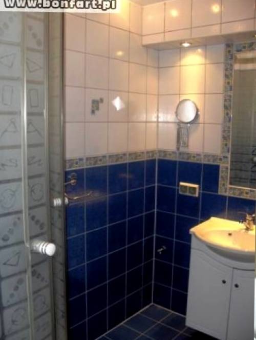 Mieszkanie powstało w przeszłości z połączenia kawalerki i mieszkania trzypokojowego. Posiada dwie niezależne łazienki z wc. Jedna z wanną, druga z kabiną prysznicową. Balkony również są dwa. Bardzo ładny rozkład pomieszczeń, idealny dla małżeństwa z dziećmi. W kuchni zabudowany sprzęt AGD (kuchenka, lodówka, zmywarka-za dodatkową opłatą). Cześć podłóg pokryta panelami podłogowymi, pozostałe parkiet sosnowy.