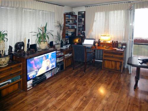 Pokój wykonany na zamówienie z najlepszych materiałów, nowa kanapa rozkładana z materacem zdrowotnym Bedding, 7 szaf w zabudowie, podłoga panele dostosowane do mebli, barek, biurko z regałem, ława rozkładana na stół i podnoszona, regał, nowy telewizor SONY 42” w nowej technologii, Internet.
