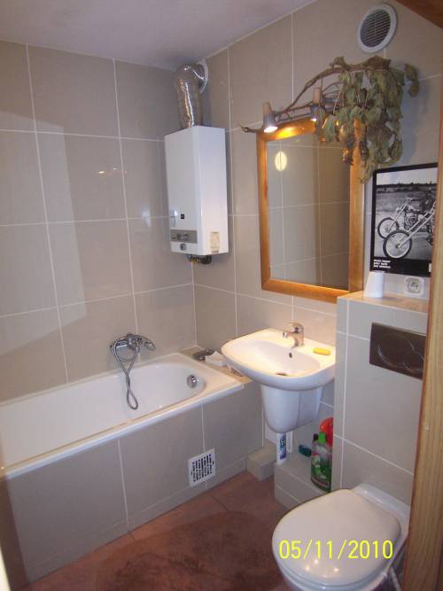 - ciepła woda z piecyka gazowego (usytuowany w łazience)
