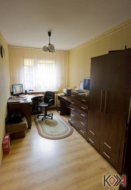 Składa się z 4 pokoi, kuchni, łazienki, WC, dużego przedpokoju i balkonu.