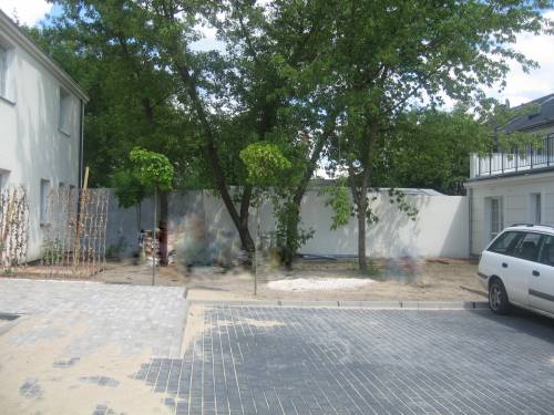 Jest plac z drzewami do użytku mieszkańców.