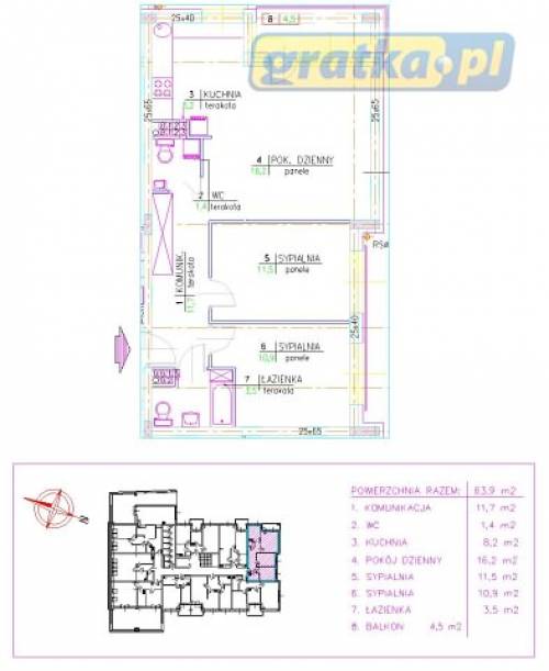 całkowita: 63,9 m. kw.