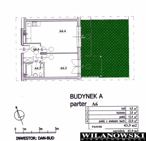 Mieszkanie o pow. 43,9 m2 z ogródkiem , usytuowane na parterze.