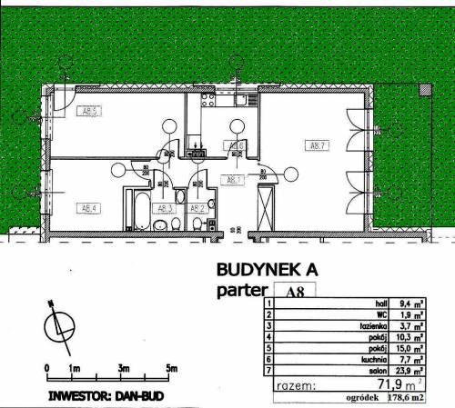 Mieszkanie o pow. 71,9 m2 z ogródkiem , usytuowane na parterze.