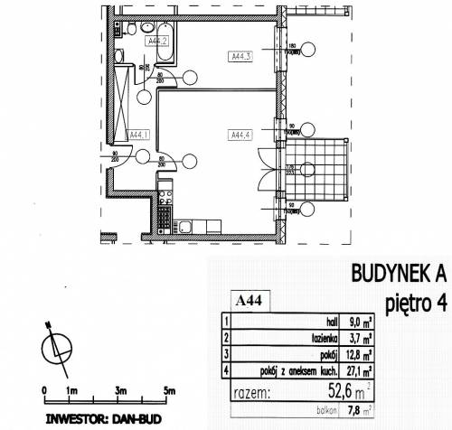Mieszkanie o pow. 52,6 m2 z balkonem, usytuowane na IV piętrze.