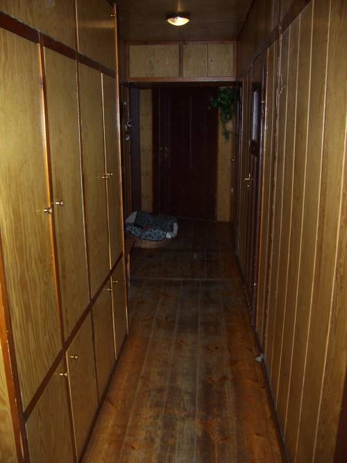 W korytarzu znajduje się zabudowana szafa na ubrania oraz buty, a także duży pawlacz.