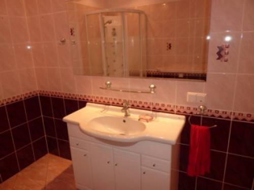 Kuchnia posiada nowoczesna zabudowę, kuchenkę i lodówkę. Łazienka wyposażona jest w armaturę sanitarną oraz kabinę prysznicową z hydromasażem.