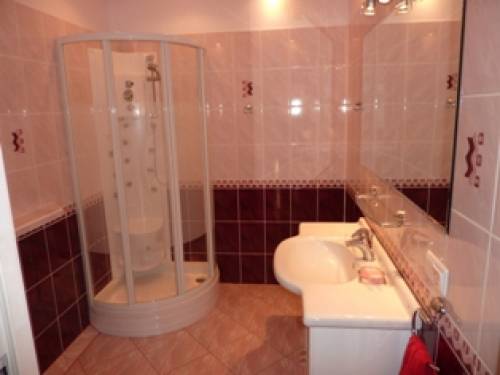 Kuchnia posiada nowoczesna zabudowę, kuchenkę i lodówkę. Łazienka wyposażona jest w armaturę sanitarną oraz kabinę prysznicową z hydromasażem.