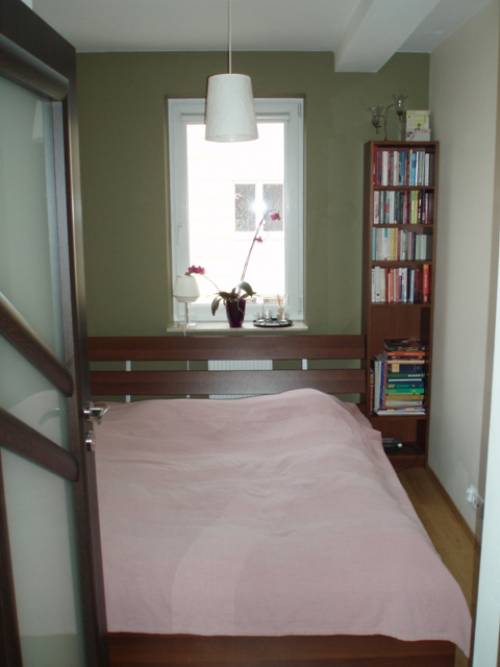 Mieszkanie jest w pełni umeblowane: 3 szafy, stół + cztery krzesła, szafka RTV, dwa regały , kanapa, łóżko. Istnieje możliwość zakupu wraz z pełnym wyposażeniem(30tyś).