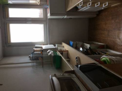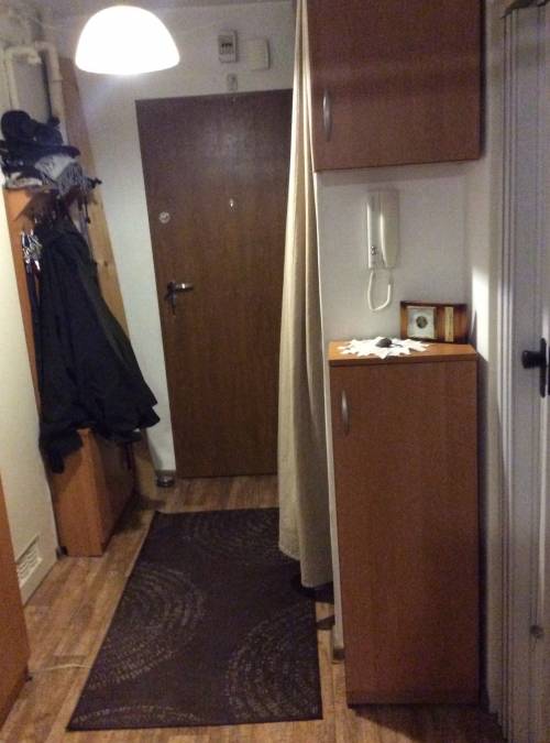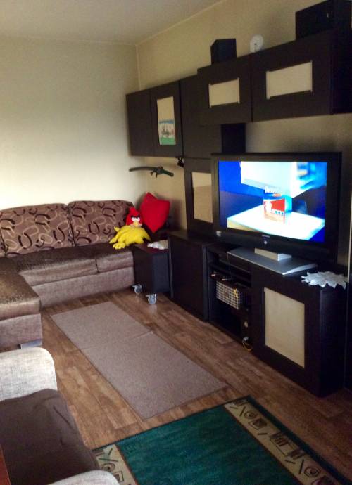 Zrobione 8 lat temu gładzie i mieszkanie częściowo wytapetowane. Tapety o neutralnym kolorze i wzorze nadają się do malowania. Okna i drzwi wejściowe były wymieniane 8 lat temu. Na podłogach ładna wykładzina PCV ciemny mahoń w stanie 5-, bardzo łatwa w utrzymaniu czystości. Ściany i sufity wymagają odświeżenia. Kuchnia bez płytek. Łazienka do remontu przez nowego właściciela.