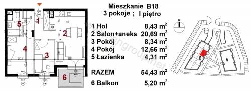 Przedstawiamy Państwu ofertę sprzedaży mieszkań trzypokojowych o powierzchni 54,43 m2