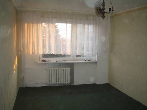 Okna PCV i parapety wymienione, na podłogach w pokojach wykładziny w kuchni płytki.