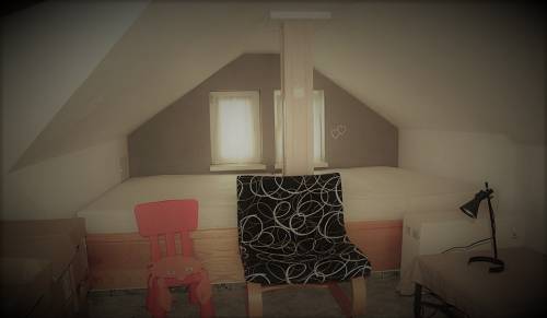 poddasza z łazienką - prysznicem, umywalką, toaletą.