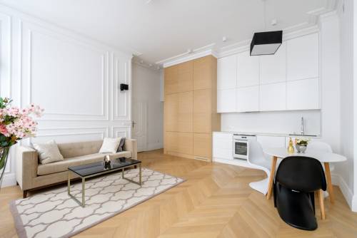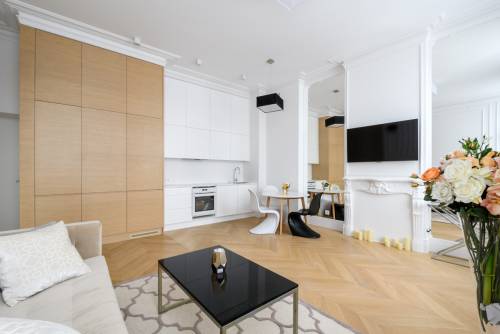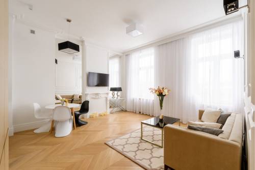 Mieszkanie w pełni odrestaurowane w bardzo wysokim standardzie, zaprojektowane przez projektantkę wnętrz w eleganckim stylu.- nowy, olejowany, dębowy parkiet - jodełka,- wszystkie drzwi drewniane, robione na zamówienie,- nowa zabudowa w hallu i kuchnia na wymiar, fornirowana, wyposażona w nowy sprzęt AGD Electrolux do zabudowy( zmywarka, płyta indukcyjna, piekarnik, okap i lodówka) oraz zlew marki Blanco i baterie Kludi- blat kuchenny ze spieku kwarcowego Neolith Calacatta, odpornego na zarysowania, imitujący marmur- łazienka wyposażona w baterie marki Kludi oraz wanne (z prysznicem), podwieszane wc wysokiej jakości, szafkę podumywalkową szer 80cm. Wykorzystano też elegancki, hiszpański gres imitujący marmur.- na ścianach i sufitach położono sztukaterie gipsową ( gzymsy i cokoły o wysokości 20cm oraz ozdobne listwy ścienne), w salonie przestrzeń optycznie powiększają lustra sięgające sufitu.w całym mieszkaniu zamontowano ciekawe, designerskie oświetlenie, kinkiety i listwy LED- budynek jest w bardzo dobrym stanie technicznym. Wymieniono wszystkie instalacje natomiast klatki schodowe są niewyremontowane i bardzo zniszczone. Remont jest planowany w 2019roku.