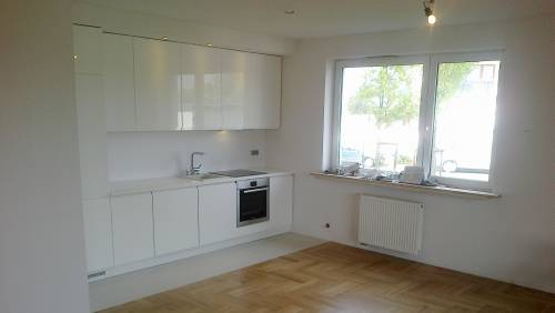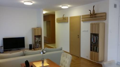 Powierzchnia mieszkania 75,3m. Loggia 29m. Pokój dzienny z aneksem kuchennym 37m, sypialnia 11,9m, sypialnia 10m, korytarz 7,2m. Ze wszystkich pokoi można wyjść na loggię. (Ściany małego pokoju nr3 na planie zostały wyburzone dla utworzenia dużego pokoju dziennego z aneksem kuchennym 37m, na fotografiach). Mieszkanie posiada 2 łazienki (większa o pow. 6,2m, prysznic, duża wanna, wc, umywalka), mniejsza 2,9m (prysznic, wc, umywalka). Kuchnia bardzo dobrej jakości w zabudowie, bezgłośna lodówko-zamrażarka Bosch, Płyta indukcyjna Bosch i piekarnik Bosch, pralka Whirlpool. Loggia 29m! Ekspozycja okien pokoi południowo-zachodnia! Okno w kuchni ekspozycja na wschód!
