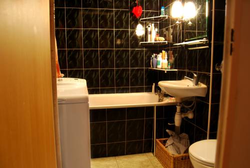 Łazienka: elegancka, 2 lata po położeniu glazury i terakoty.