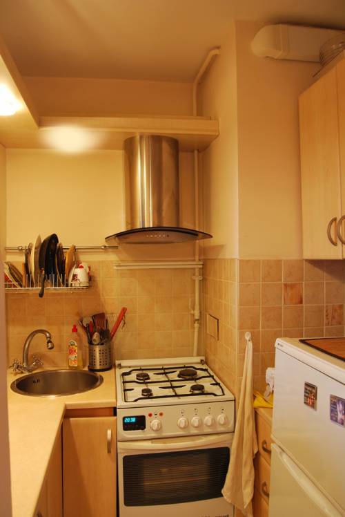 Kuchnia: nowa glazura i terakota, nowe meble kuchenne z okapem.