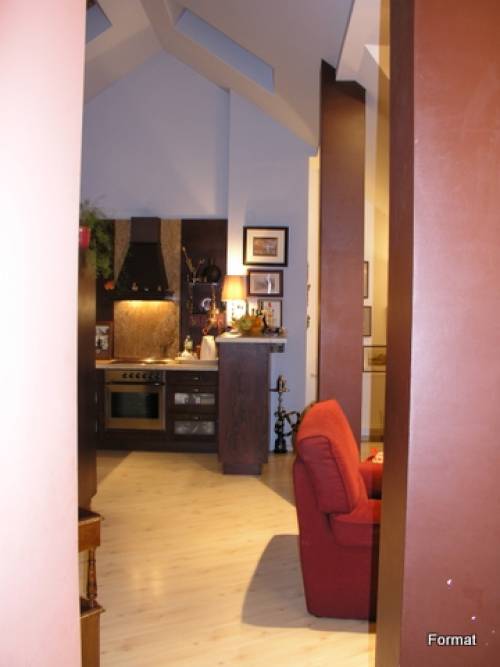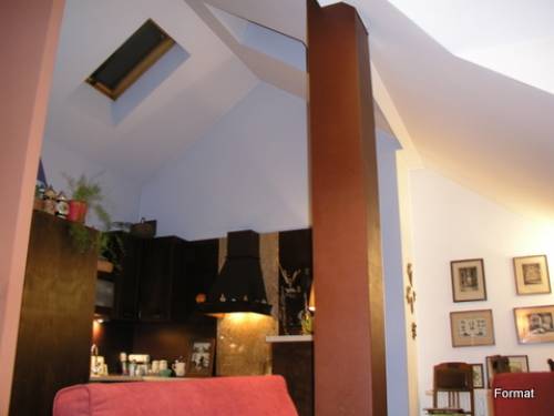 Lokal posiada liczne skosy z oknami mansardowymi. Wysokość w najwyższym punkcie przekracza 4 m. przez co lokal robi wrażenie bardzo przestrzennego. Otwarta kuchnia wraz z jadalnią i livingiem oraz korytarzem tworzy jedną rozległą przestrzeń z wyjściem na balkon o ekspozycji zachodniej i powierzchni ok 7m2 . Dwie sypialnie posiadają szafy wbudowane a widna, obszerna łazienka 3 okna.