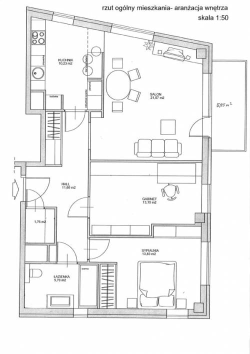 Salon: 21,57 mkw, pn/wsch, okna z dwóch stron, podłoga: klepka dębowa
