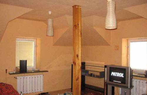 Pokój dzienny 19m2 z dużymi oknami, pokój ze skosami (pokój o pełnej wysokości) oknem oraz dodatkowym oknem dachowym - 26,8m2, Sypialnia 17,9m2 z dużym oknem i wbudowaną garderobą, jasna kuchnia - 10,9m2, jadalnia (wykusz) - 10,9m2, łazienka - 10m2 oraz duży i przestronny hall.