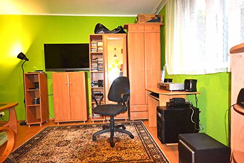 Pokój z kuchnią (20m2) + łazienka (wc+ kabina prysznicowa) i przedpokój.