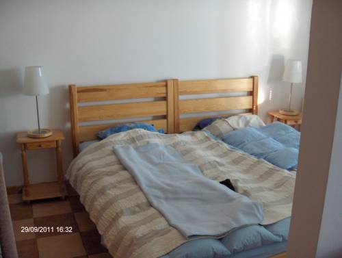 Salon, sypialnia, aneks kuchenny, łazienka (45,27 m2), 1. piętro, duży taras (13,44 m2), garaż w bryle budynku na parterze (23,46 m2), pomieszczenie gospodarcze na parterze (4,06 m2). Mieszkanie kompletnie wyposażone w meble z litej sosny (w salonie i sypialni) i sprzęt AGD+RTV, nadaje się do natychmiastowego zamieszkania. Mieszkanie jest w bardzo dobrym stanie, ściany czyste, bez hałasu, intruzów, kameralnie, spokojnie, cicho.