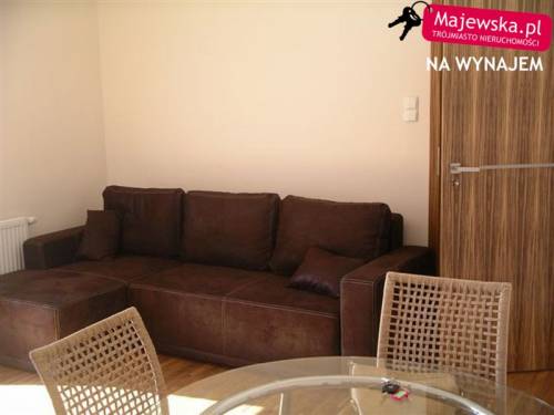Apartament usytuowany jest na czwartym piętrze budynku. Tworzą go 2 oddzielne pokoje: salon z wyjściem na balkon oraz sypialnia z szafą. W mieszkaniu oddzielna zabudowana kuchnia wyposażona w niezbędny sprzęt AGD (lodówka, zmywarka, piekarnik) oraz łazienka z zainstalowaną wanną. W przedpokoju pralka w zabudowie oraz szafa. Parkiet na podłogach. W mieszkaniu założono klimatyzację, jest bardzo ciepłe i widne. Do apartamentu należy miejsce parkingowe w hali garażowej (podziemny parking) oraz komórka lokatorska. W mieszkaniu jest pełne umeblowanie i wyposażenie (telewizor LCD, pralka, odkurzacz). Czynsz miesięczny to kwota około 290 zł.