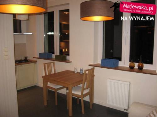 Na powierzchnię mieszkania- 60m2 składają się dwie sypialnie(19 i 17m2), salon z aneksem kuchennym o powierzchni 19m2, łazienka z prysznicem. Dodatkowym pomieszczeniem jest piwnica. Z jednego z pokoi można wyjść na balkon. Mieszkanie jest ciche i słoneczne, w pełni umeblowane. Kuchnia z jasną drewnianą zabudową, wyposażona w mikrofalówkę, piekarnik, zmywarkę i telewizor LCD, który stoi w pokoju dziennym. Mieszkanie przeszło remont, wszystkie instalacje są nowe, tak jak plastikowe okna. Przy wyposażaniu i aranżacji mieszkania korzystano z pomocy architekta wnętrz, dzięki czemu mieszkanie ma niepowtarzalny urok.