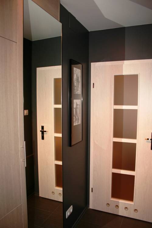 4. Garderoba - na podłodze wykładzina, wyposażona w regały.