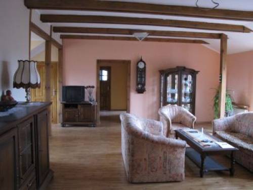 Wynajmę świeżo wykończone, luksusowe mieszkanie na pierwszym piętrze wraz z meblami, wyposażeniem kuchni w stylu retro (nieużywana lodówka, piekarnik, kuchenka gazowa - wszystko najwyższej jakości). Mieszkanie na jednym poziomie, widny salon z jadalnią i zasłoniętym aneksem kuchennym z dostępem do ogromnego tarasu o wielkości 60m2. W salonie stylowy kominek, komplet wypoczynkowy, rzeźbiona komoda oraz gablota. Łazienka z prysznicem, elegancka glazura. Dwie duże sypialnie, w tym jedna z dużą garderobą. Dodatkowo jeden pokój z możliwością zaadaptowania na kolejną łazienkę bądź pokój. Całość w klepce dębowej. Nowe okna plastikowe. Mieszkanie jest ciepłe, możliwość ogrzewania gazem lub ogrzewaniem kominkiem. Dostęp do wody ze studni głębinowej, ponadto zamontowany profesjonalny filtr wodny. Możliwe korzystanie z miejsca w garażu. Na posesji parking na jeden dodatkowy samochód. Mieszkanie położone w zacisznej lokalizacji. 100m od przystanku autobusowego do Warszawy, 1800m do stacji kolejowej (13min pociągiem do Warszawy Wileńskiej). 20 min samochodem do centrum Warszawy. Mieszkanie jest w świetnym stanie, do tej pory było nieużywane. Możliwość uzyskania dostępu do części ogrodu.