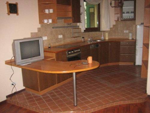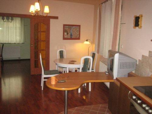 kuchnia z aneksem jadalnym, mały pokój dzienny oraz sypialnia z łazienką. Osobna toaleta dostępna od strony holu. Kuchnia z płytą elektryczną (nie ma gazu w mieszkaniu) lodówka i zmywarka.