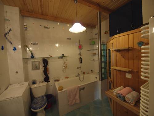 Duża łazienka (7,32m2) zachęca do relaksu dwuosobową, drewnianą sauną oraz bardzo długą, wygodną wanną.