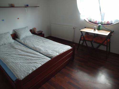 Pokój z okrągłym oknem (14m2) wyposażono w podwójne łóżko wraz z nocnymi szafkami, poza tym pod oknem znajduje się składany stolik, przy którym można wypić kawę z pięknym widokiem na Narew.