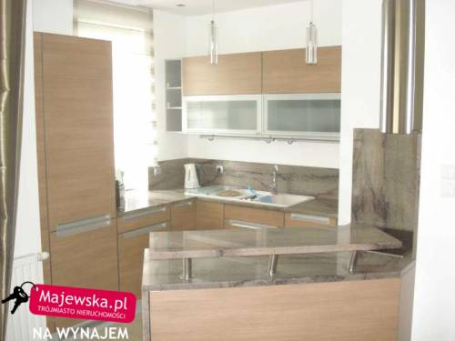 Mieszkanie o powierzchni 67m2 tworzą: salon z wyjściem na balkon i widną kuchnią, sypialnia (11m2) z garderobą z oknem, mniejsza sypialnia z szafą z drzwiami lustrzanymi w zabudowie, łazienka z wanną wyłożona glazurą i terakotą, którą wyposażono w wannę, osobna toaleta oraz hall o powierzchni 7m2. Aneks kuchenny z zabudową w drewnie i sprzętem gospodarstwa domowego firmy Simens. Na podłogach położono parkiet z egzotycznego drewna. Do użytku lokatorów jest pomieszczenie gospodarcze, a samochód można parkować w hali garażowej.