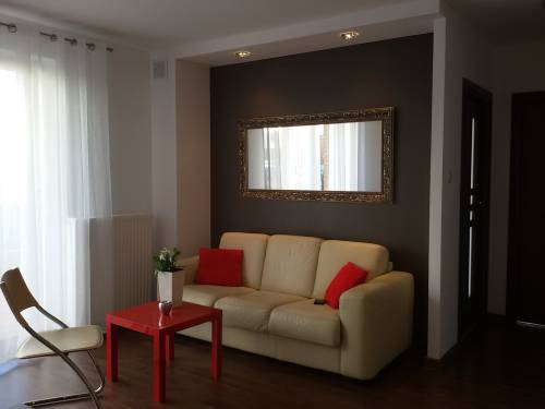 -salon z otwarta kuchnia wyposazona w wyskiej jakosci sprzet AGD(Siemens,Bosch,Whirpool) oraz skorzanym rozkladanym wypoczynkiem