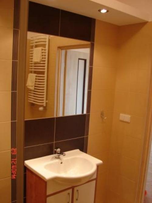Kuchnia: otwarta, terakota, glazura, nowoczesne meble, kuchnia gazowa, piekarnik elektryczny, Łazienka: terakota, glazura, kabina prysznicowa, umywalka, szafka.