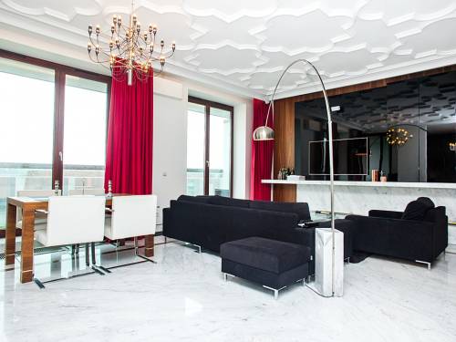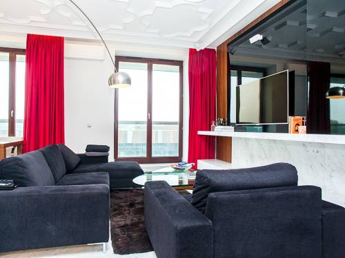 Luxurious, comfortable and modern apartment overlooking the river at Wybrzeże Kościuszkowskie Street, located on the 4th floor of a prestigious development, which will surely satisfy even the most demanding customers. The apartment building is located in the most desirable and prestigious part of Warsaw - Powiśle, surrounded by beautiful parks, Vistula boulevards and many fashionable restaurants and cafes, with a convenient access to the City Center. An ideal place for people who value silence and proximity to the center. The apartment, with a floor area of 80 square meters is fully equipped and furnished, finished to the highest standard. It comprises one bedroom with small home office desk, spacious living room with an open kitchen and dining table, toilet, bathroom with a large shower, walk in closet and spacious loggia. Unique quality of the apartment is panoramic view over Vistula river, prestigious adress and very high standard of finishing: marble floor, american walnut built-in wardrobes in the form of walls, kitchen with silestone countertop and custom made furnishings.It is also equipped with air conditioning, intelligent home management system and underfloor heating in bathrooms. The property is decorated in modern, elegant style to meet the requirements of the most demanding Tenants. It comes with two parking spaces in the underground garagePrice 12 900 PLN per month including admin fees. Avaliable from July 2018