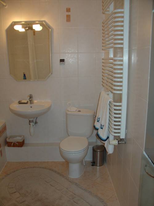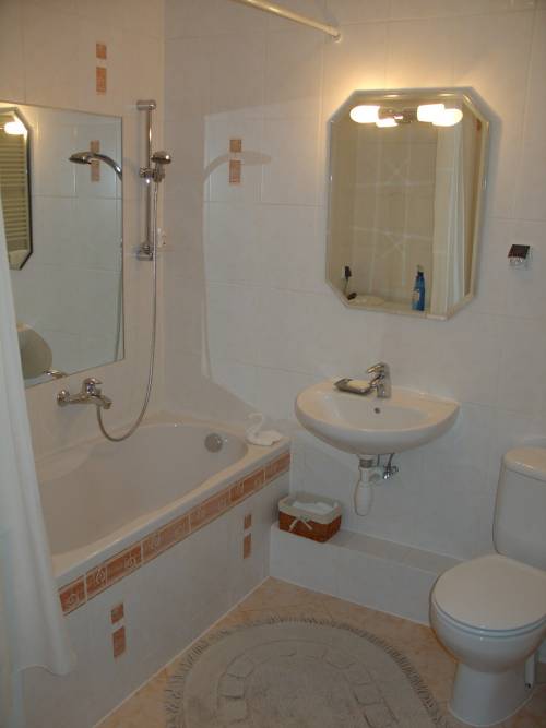 Ładna, jasna łazienka. Wanna z prysznicem.