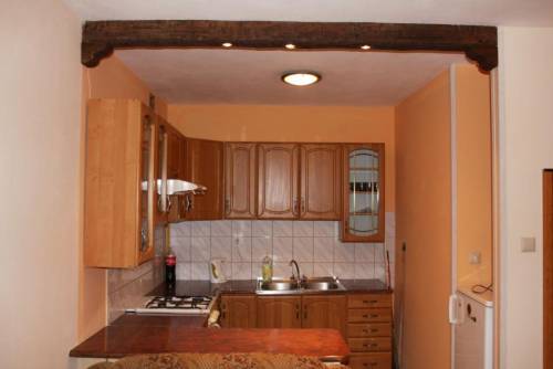 W kuchni jest komplet szafek (wiszących i stojących), kuchenka gazowa i lodówka. Dodaje także komplet nowych talerzy, szklanek, filiżanek i sztućców.