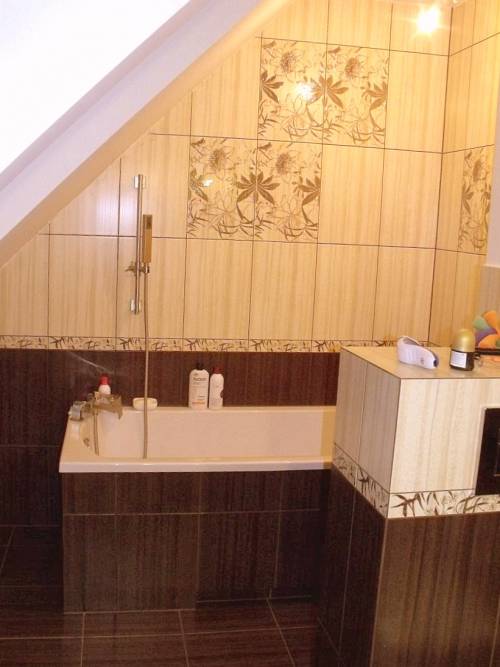 Na podłogach w łazience kafle, w pokoju panele.