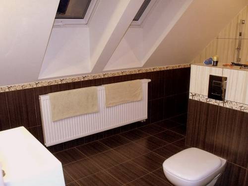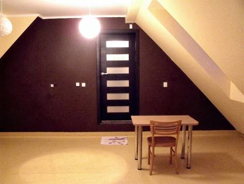 Na piętrze: duży, przestronny pokój oraz łazienka.