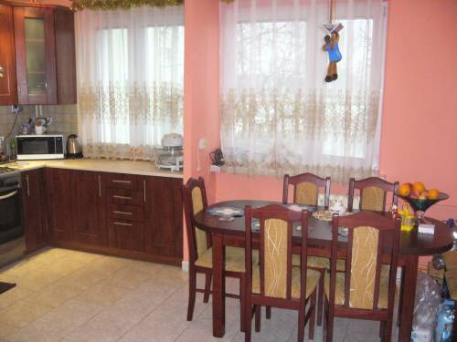 Kuchnia połączona z jadalnią (duża powierzchnia) co daje komfort i swobodę podczas korzystania kilku osób w tym samym czasie.