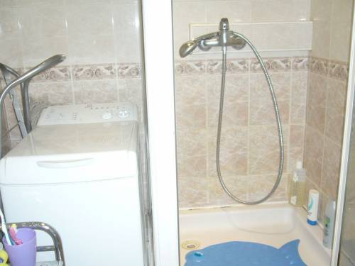Łazienka z prysznicem, oddzielne WC.